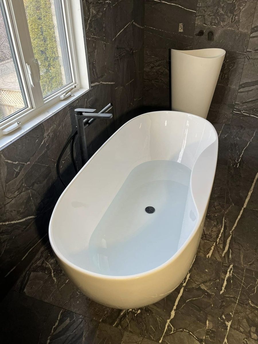 Douche, bain, vanité, toilette suspendue — on s'occupe de toute la plomberie derrière votre projet de rénovation, clé en main.